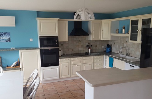 Completely renovated, this air-conditioned accommodation of 85m² can accommodate 4 to 6 people. It has 2 bedrooms with double bed 160 and a folding bed (double 140) to be installed in the living room if necessary, a fully equipped kitchen, a bathroom with toilet, a bathroom. private water to a room and a toilet.