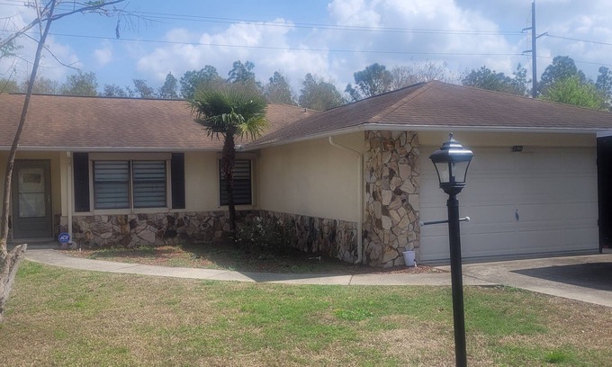 Our home offers over 1800 Sq ft of living space in a quiet neighborhood in Beverly Hills Florida. Recently updated with an open floor plan and 3 large bedrooms. The master suite has a king bed ,65 inch smart tv and en suite bathroom. Bedroom 2 offers a king bed. Bedroom 3 offers a queen bed. Main bath offers a big walk in shower. The game room also has a futon for extra sleeping accommodation. The living room offers a huge sectional couch and a 70 inch smart tv. The large kitchen has everything you need to prepare a meal including slow cooker, griddle, waffle maker etc. There is a large back yard for you and your fur babies to enjoy as well as a propane BBQ. And there is a game room with a 50 inch TV and game console with 20000 games, and some board game and playing cards. Also provided is free wifi and full size washer and dryer. The driveway can accommodate 3 or 4 cars, or a truck and boat trailer.