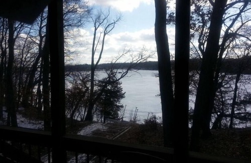 With a tree-house feel, enjoy extraordinary views of lake from home built in 2001. Just steps from welcoming tiki hut, dip toes into clear spring fed lake with sandy bottom. 1 hr from Mpls, and 5 mins from large Sat/Sun flea market and many antique shops.