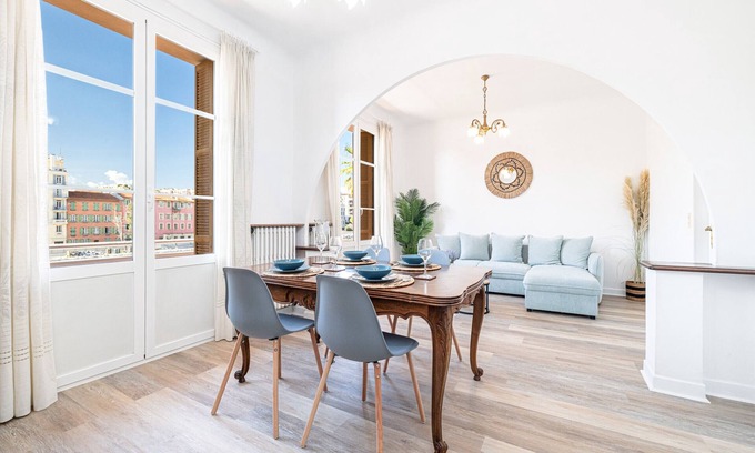 An amazing and spacious 90 m2 apartment located near the Garibaldi Square with 2 bedrooms, a large balcony and parking.Attention, as you can see on the photos there are currently large works in front of the building.SpaceWelcome to our Apartment into an exceptional location, Located on the second floor with elevator, you will find all the comforts: included parking, proximity to touristic places, space, A/C, equipped kitchen, washing machine, large terrace, Wi-Fi... This apartment consists in a two bedroom with double bed, one bedroom on the street side and the other one is on the court side so quieter, bathroom with shower, spare WC, living room with sofa and TV.Kitchen is fully equipped: fridge, hotplates, oven, microwave, coffee machine, and kettle. AccessApartment is ideally located between Garibaldi Square and the Harbor, less than 5 minutes away from Garibaldi Square’s tram.The apartment is fully equipped. Bed linens and bathroom towels are provided, and you will have access to the complete accommodation.InteractionBnb Groom Services’ team is glad to greet you in Nice.Keys will be given to you in our office, Bnb Groom Services. We can also organize a check in on site depending on your arrival time and our availability. Don't hesitate to share you arrival information as soon as you have it.We will be there to advise you before and during your stay, available by phone or by email to answer any questions and make sure you spend a great stay at your home away from home.NeighborhoodGaribaldi Square and Place du Pin are popular and lively areas of Nice. This situation offers you the opportunity to do all your food shopping by walking, as well as a multitude of restaurants and many shops… and of course beaches and the Promenade des Anglais at 15 minutes on foot. Walk along Garibaldi Square and you will arrive at the entrance of the Old Town and its famous flower market.TransitAccess to accommodation from the airport is possible by tram: take the line n°2 in direction of Port Lympia and stop at Garibaldi Le Château. Journey takes only 30 minutes and this stop is 450m away from the apartment. You can also ask us to arrange a private car transfer from the airport to the apartment.Train station « Nice Riquier » is 10 minutes away on foot, allowing you to discover Antibes, Cannes, Grasse, Monaco, Menton or even to go in Italy easily.Access to the building is also possible by car. You can park on the included community parking.IMPORTANT - RULES OF PROCEDURE :For security reasons, before arrival an online check-in should be completed via our Yaago application in which the person in charge of the booking should provide identity document.The accommodation should be returned in a suitable state of use, respecting the premises, the neighborhood, as well as basic rules of cleanliness and hygiene.Parties and noisy evening gatherings are not allowed.Smoking isn’t allowed inside.Non-compliance with these instructions may result in a deduction from the deposit or cancellation of the stay.Thanking you in advance for your kind collaboration.