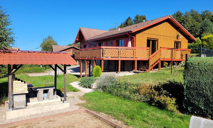 LARGE CHALET IN THE VOSGES, 20 MIN FROM GERARDMER is located in Anould. LARGE CHALET IN THE VOSGES, 20 MIN FROM GERARDMER provides accommodation, featuring Sports/Activities, Fireplace/Heating, Entertainment, among other amenities. This Ski Chalet features Sports/Activities, Fireplace/Heating, Entertainment, to make your stay a comfortable one.