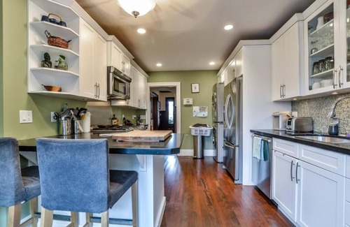 Guests will have full access to the space and amenities. Our guests will have full access to our spacious kitchen, equipped with a convection oven, gas range with large griddle, Kitchenaid mixer, food processors, complete complement of cooking and baking tools, and glass/flatware for hosting! Guests will also have full access to all household necessities (towels and sheets, of course, shampoo, soap, etc).