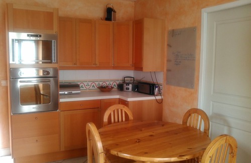 House in center town in peace, with a lot of volume 300M ², in the rdc living room with table football chimney, living room overlooking the mezzanine, kitchen, laundry, sanitary. Upstairs 4 bedrooms, 2 bathrooms, a mezzanine with billiards and additional sleeping. South exterior, large barbeccue summer kitchen, plancha, fridge, fenced pool, garden. North exterior, course with climbing wall, table tennis.