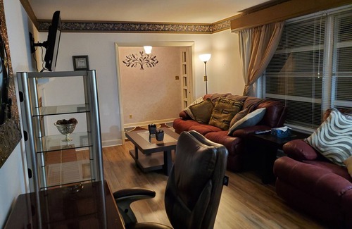 Make yourself at home in this large 4-bedroom Lumberton retreat. This marvelous house features 4 queen beds and 2 twin bed, perfect for a group getaway. With 3 bathrooms fully equipped, guests will have all the comforts they need. There are 2 large living rooms, one that offers an optional additional queen bed for extra sleeping space. Our place will help you feel at home while you're traveling in Lumberton. This property boast 2 driveways with wrap around-parking for large parties. Back sitting area and grilling area with outdoor grill. Shaded outdoor swing and covered seating in beautifully landscape yard under cover of year round shade from mature trees and foliage.