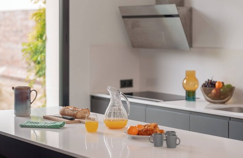 ⁃ a kitchen is fully equipped with a Nespresso machine, kettle, toaster, Miele dishwasher, XL induction hob, convection oven, microwave oven, etc.