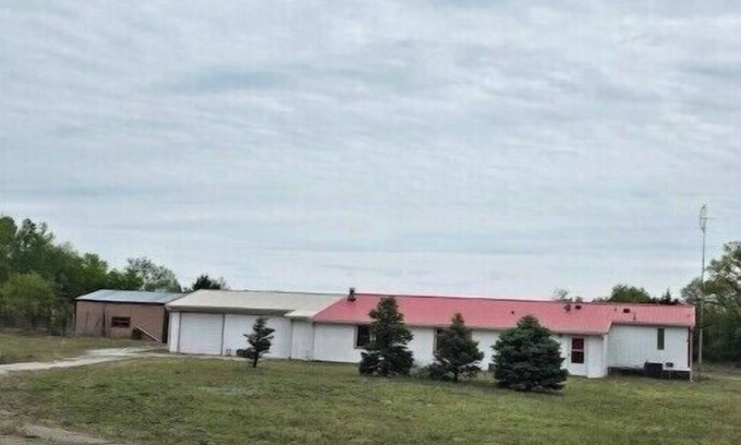 Large house on 40 acres with 3 bedrooms each with closet, a dresser, and all ammenities, two bathrooms with full bath and shower and all ammenities. Laundry room with washer, dryer, ammenities and 1/2 bath attached. Attached back room/mud porch with storage, coat and shoe closet, and gun cabinet. Three car garage, out buildings and plenty of space to park trailers, ATVs, camper etc. Fourty acres to explore on foot or on an ATV.