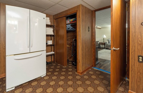 * **Downstairs:** A second living area with electric fireplace, laundry, extra refrigerator, bathroom with shower, and a daybed and 2 twin beds provide additional space and convenience. Walk out from this level to the covered patio.