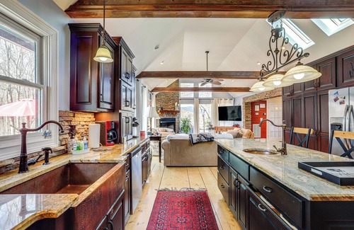 Whether you're planning a family get-together or a group getaway, this Dahlonega vacation rental offers the ideal North Georgia escape for entertainment and relaxation! This 2-bedroom + loft, 2-bath cabin boasts a secluded setting, a gourmet kitchen, and a multi-level deck — perfect for cookouts, s'mores, and stargazing. After exploring scenic mountain trails and downtown shops, you can gather for a movie night by the fire.