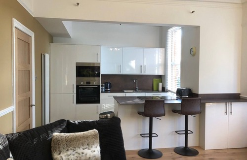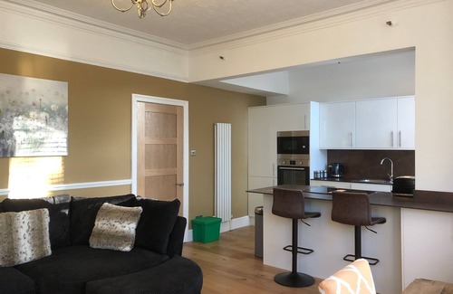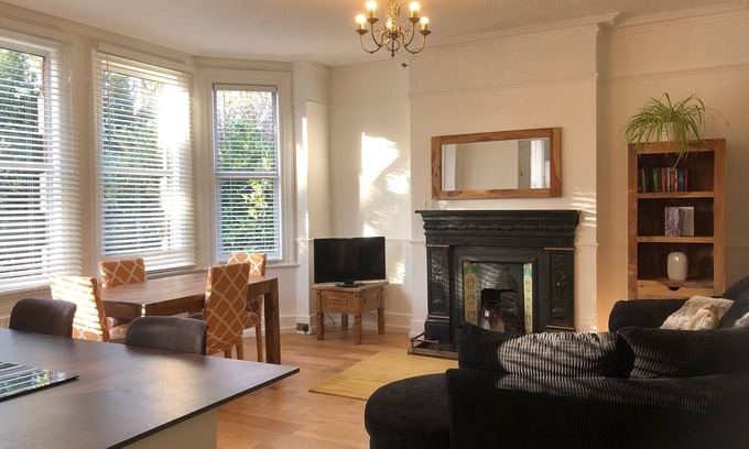 This spacious first-floor apartment is bright and sunny with a large bay window looking out the front of the house. There is a private balcony off the 2nd bedroom with a table and chairs overlooking the garden. The fully equipped kitchen is open plan to the lounge/dining area.