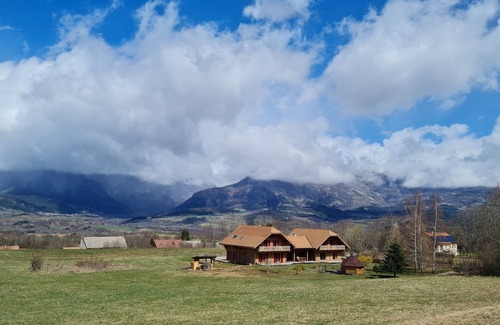 Très grand chalet en bois tout confort, face aux montagnes avec une vue a 360 degrés sur le massif du Devoluy et le plateau du Champsaur. Tranquillité assurée! 6 chambres avec chacune sa salle de douche, grande pièce à vivre, 2 saunas.