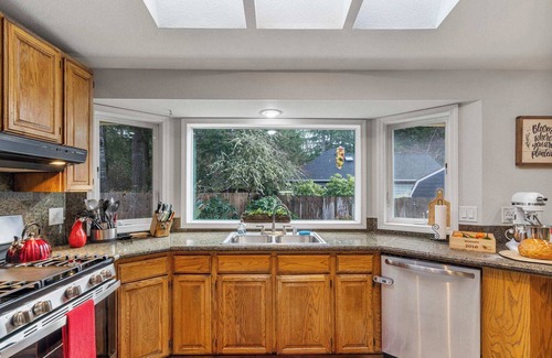 Welcome to The Fox Den, a charming 3-bedroom, 2-bathroom haven nestled in a quiet, family-friendly neighborhood in West Olympia, Washington. This inviting home offers the perfect blend of comfort, convenience, and entertainment, making it an ideal retreat for families, friends, and furry companions alike.