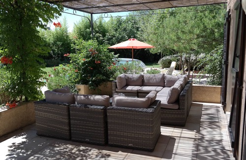 Outside there is an enormous terrace for outdoor eating and chilling in the evening, a large beautiful mature garden with figs, pomegranites & other fruits. A gardener attends all year round. There is automatic watering (arrosage) which keeps the lawn very green.
