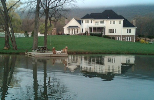 Estate home can sleep 12: Main home listed here sleeps 10 and apartment (booked separately) sleeps 2. 16 acre private lot adjacent to Evergreen Country Club - a short walk across the backyard. Fabulous kitchen, large family and media rooms with HDTVs, comfortable furnishings, and new carpet. 10 foot ceilings and 8 foot doors for a grand indoor experience. Outdoor living area with spacious screened-in porch, large patio and outdoor fireplace area overlooking natural areas and deep water pond (with rope swing and dock)> Geothermal HVAC means noisy HVAC fans won't interfere with the outdoor experience.