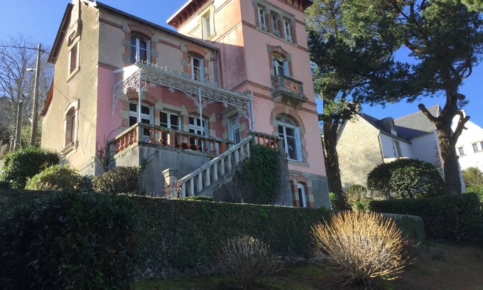 Large family home in the Tréboul district of Douarnenez, Finistère. It is a charming house from the beginning of the 19th century, with an enclosed garden and a magnificent view of the sea. Built on 3 levels and a basement overlooking the garden, it has 5 bedrooms, a living room and a dining room with covered terrace overlooking the sea and a large kitchen overlooking the garden. It is well equipped (dishwasher, oven, microwave, washing machine, dryer, TV, WiFi ...). On foot from the house: swimming and nautical activities on the Sables Blancs beach, the coastal path for walks in the great outdoors, the thalassotherapy center, cafes and restaurants, ...