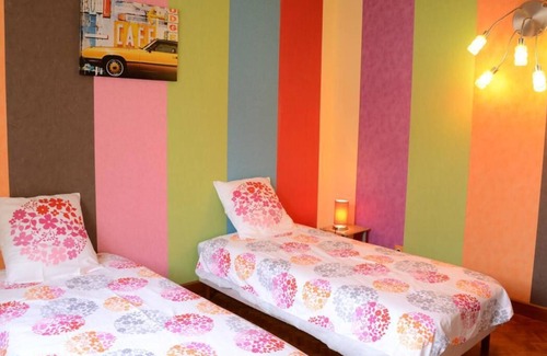 Ground floor: fitted kitchen, lounge area with fireplace, convertible corner sofa and flat screen, living room opening onto a large terrace with garden furniture and parasol, a bedroom with bunk beds (for 2 children), bathroom bathroom, separate wc, one bedroom (140x190 bed), one bedroom (2 90x190 beds). Upstairs: a double bedroom (140x190 bed) with interconnecting baby corner, a triple bedroom with desk (3 90x190 beds), a double bedroom (140x190 bed), bathroom (shower + wc). Sports hall (bicycle, stepper, weight bench).