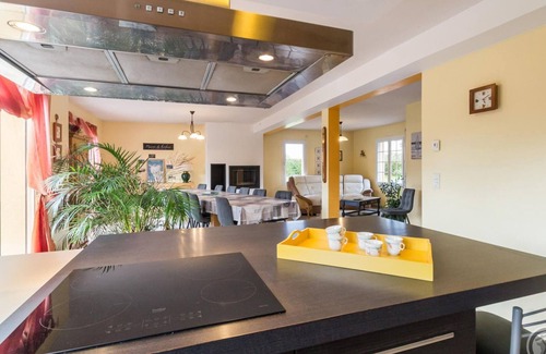Detached house. Large living room with sitting area (TV, internet) and dining room. Open kitchen (oven, induction hob, dishwasher, refrigerator, microwave,). Large laundry room (washing machine, dryer, freezer, sink, table football). Bedroom 1 (160x200 bed) with bathroom in the room (shower, vanity unit, hair dryer). Bedroom 2 (2 bunk beds 90x190). Separate toilet. On the 1st floor, bedroom 3 (1 bed 140x190), bedroom 4 (1 bed 160x200 + 1 extra bed 90x190), bedroom 5 (160x200 bed), bathroom with shower and toilet, small living room with TV and bedroom 6 (160x200 bed). Baby equipment on request. Sheets provided. Towels for hire. Cleaning service at an additional cost. Electric heating (underfloor on the ground floor) included. Private enclosed garden. Terrace. Garden furniture. Barbecue. Awning with ping-pong. Swing set. Parking. This imposing contemporary house is nestled in a remarkable green setting. Hidden behind a small grove, you'll discover this XXL-sized, comfortable home. The light-filled living room will comfortably accommodate all your guests, and you'll appreciate the large back kitchen, which also serves as a laundry room and games room. Children can relax safely in the pleasant garden surrounding the house and enjoy the games provided. The owners, Nathalie and Camille, spent happy days here with their children before sharing it. Now your close neighbors from the neighboring farm, they invite you to discover the Cotentin and Valognes, a city of Art and History (all shops and leisure activities). The location is conveniently located in the center of the peninsula for excursions and visits.