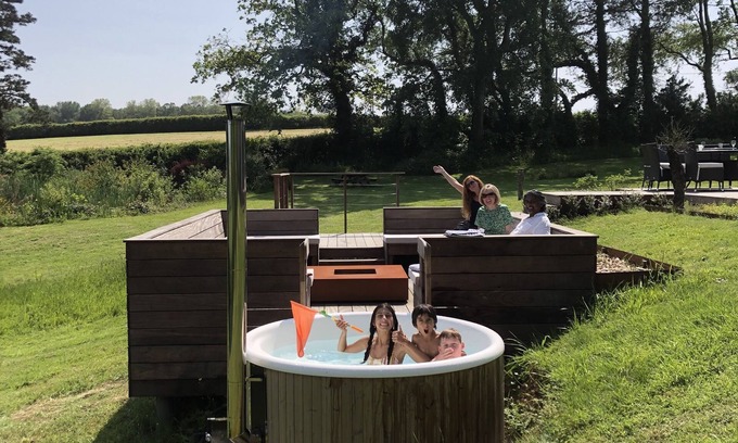 With 1.6 hectares of garden & uninterrupted views to the South, East & West, you will feel both relaxed & invigorated with the setting. You will also have full & exclusive access to the external kitchen with BBQ, Wood fired pizza Oven, fire pit area and wood fired jacuzzi (built Summer 2022).