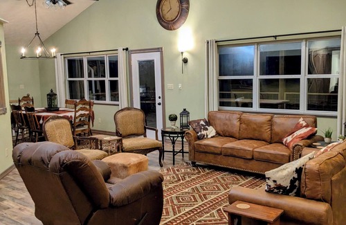 Welcome to this charming farmhouse in Cape Fair. This wonderful property boasts 6 bedrooms, including 3 king beds, 3 twin beds, and 1 full bed. With 3 bathrooms equipped with a bathtub, shower, and hair dryer, guests will feel right at home. Enjoy the AC, WiFi, washing machine, heating, and iron amenities provided for your convenience. Whether you're looking for a peaceful retreat or a fun-filled getaway, this farmhouse has everything you need for a tremendous stay. During your stay you can enjoy the following activities: Floating on our personal creek with access to gravel bar, boat rentals on Tablerock Lack only 9 miles away, 40 minutes from Branson,, fishing, hiking. 1 Hour from Eureka Springs AR and 30 minutes from trout fishing at Roaring River National Park. We look forward to sharing our family farm with you at Hudson Hills!