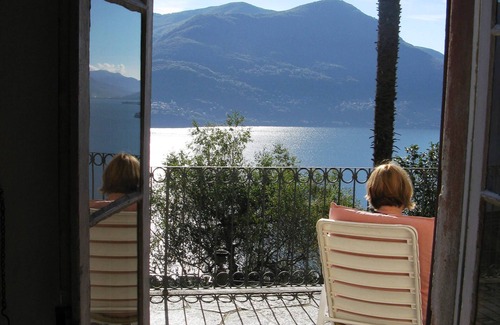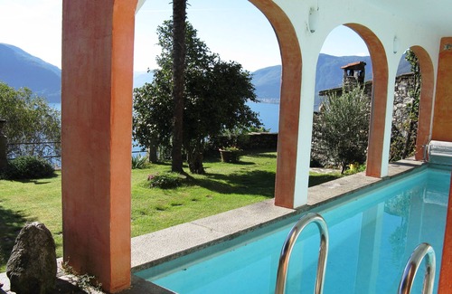 A holiday flat in an authentic Ticino villa with panoramic views, built in the 16th century has a big private garden with Pergola and a Grotto The flat (ground floor and first floor) has a living area of about 100 sq. meters. On the ground floor there is a spacious living room with a fire place with hot air circulation and a large sun-terrace; a kitchen with dining table as well as a bath room. On the first floor there are three bedrooms, two with two single beds each and one with a single bed. From each room you will have a marvellous lake view. The flat with central heating is partially renovated and equipped with mostly antique furniture. An outdoor covered swimming pool (2,5 x 7 metres) with a hot shower is located in the garden.