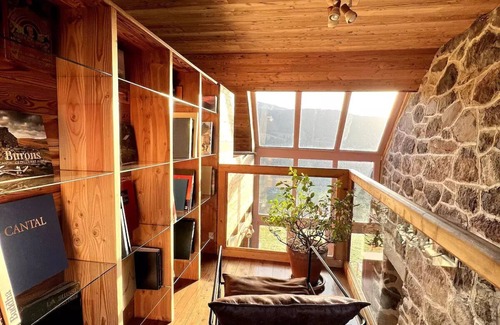 Cantal is synonymous with calm, authenticity and wide open spaces. This is exactly what L'Impradine offers, with its 450 square meters, its 100 square meters dining room where you can share moments around the fire, the vast dinningtable or the table football, its living room bathed in light, its two reading areas and its private bedrooms and bathrooms.