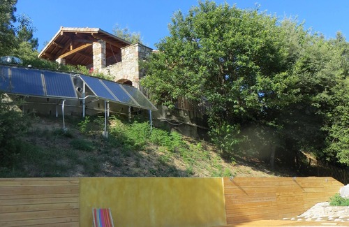 In the southern Ardèche, our large gite made of wood and golden stone, has 4 bedrooms, each with a bathroom or shower and separate toilets. The kitchen-living room opens onto the large terrace where you will spend superb moments with family or friends. It overlooks a magnificent PRIVATE POOL at the wooden beach where naturism is possible ... In winter, the stove will bring you together for beautiful evenings ... A thousand and one activities will occupy your days without going far ... Your hosts will welcome you at their table d'hôte in the evening, if you wish to taste the vegetables and garden fruits, organic beef or pork from our farm and our local specialties!