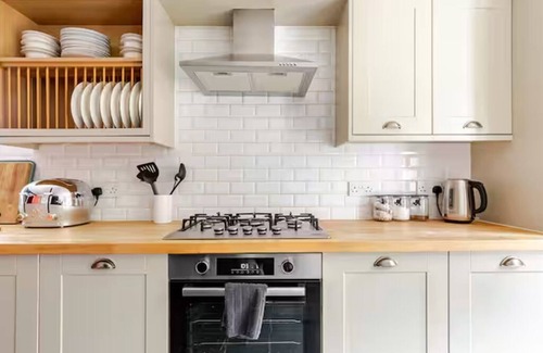 This spacious property features three floors adorned with original floorboards and cozy double rooms, providing a perfect blend of luxury and comfort. The luxurious bathroom boasts a roll-top bath and his and her sinks, ideal for unwinding after a day filled with wedding festivities. Spend summer evenings mingling in the open living spaces or curl up by the log burner on winter nights, creating a warm and inviting atmosphere that your guests will cherish. This house is perfect for hosting pre-wedding celebrations or a relaxing getaway with family and friends.