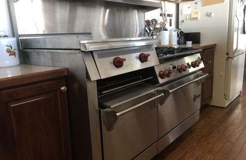 Fully Equipped Kitchen: The gourmet kitchen is equipped with top-of-the-line appliances, including a Wolf cooking range, ensuring that meal prep for large groups is a breeze.