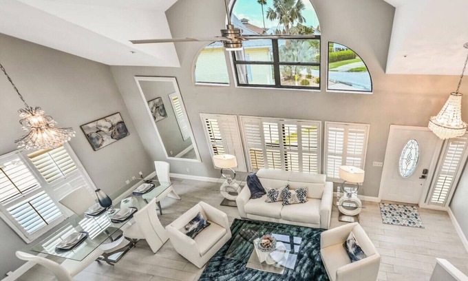 Relax with the whole family at this peaceful place to stay with stunning water view, sunsets and dolphins passing by. Boat dock,Fish,Walk to White Sandy Beach!:) It is perfect for large Family or Big group.