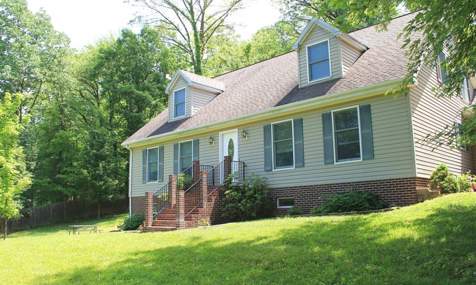 Welcome to Country Roads Inn, the perfect destination for your dreamy wedding celebration. Nestled in the scenic landscapes of Harpers Ferry, West Virginia, this spacious vacation rental offers an enchanting wooded setting that provides both privacy and beauty, making it a delightful choice for large groups. With ample space to gather and celebrate, you can create unforgettable memories with your family and friends as you say 'I do' amidst nature's backdrop.