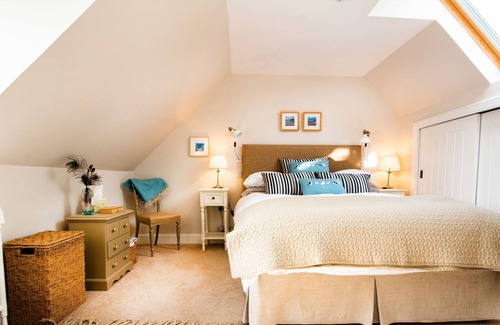 The lounge is split into 2 areas for seating around the wood burning stove and is furnished with two 2-seater sofas, chair, TV and small dining area with table and chairs. Off the lounge is a south facing sun lounge with more seating and access to the front garden with patio with outdoor seating and a barbeque. The kitchen is equipped with an electric oven, hob, microwave, dishwasher, kettle, toaster, pots, pans and ample kitchenware. Option to use the AGA range cooker which also runs the central heating. The dining area has church pews and table and has access to patio and front garden. The large utility room has a washing machine, tumble drier, fridge/ freezer, iron and board. There is an additional shower room with toiler and access to the rear of the cottage. The bathroom benefits from a bath with shower, basin and toilet. The first bedroom has a double bed, bedside cabinets with reading lamps,
