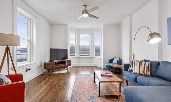 This fully renovated 1870s brick home sleeps up to 9 and features a stunning city and river view. Conveniently located less than 5 minutes from downtown Cincinnati and Northern Kentucky, guests will have the entire 2nd and 3rd floors to themselves. 1st floor is detached and unoccupied.