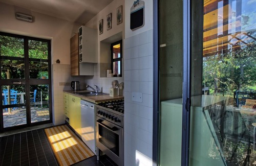 Casa della Musica shares a private swimming pool with Villa Glicini. After a swim, you can rinse off under the outdoor shower nestled in the garden.