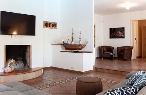 This magnificent villa is located on the edge of the peaceful village of Neviano, which perfectly embodies the Salento concept of slow life. The village, in addition to being ideal for relaxing and assimilating one a healthy biorhythm, is an excellent choice for holidays due to its proximity to beautiful fine sandy beaches (Padula Bianca, Lido Conchiglie, Rivabella, Baia Verde), very chic Santa Maria Al Bagno and the protected Natural Park of Porto Selvaggio. You will therefore be far from stress, but close to an enchanting coastline and other typical villages of the region. Enjoying an elevated position, this imposing holiday villa enjoys breathtaking views of the Salentine countryside, which you will enjoy especially from the 2 ensuite bedrooms on the first floor. Its style, simple and majestic at the same time, makes optimal use of the difference in the land level and its exposure to the sun, enriching them to the maximum (the garden and the outdoor spaces are on several levels and the pool enjoys a fantastic exposure, in addition to preserving your privacy). Past the gate, you will find several parking spaces. Here, a small ramp leads to the pool and a stone staircase to the main entrance. The pool is of considerable size, elegantly shaped, with its two semicircles highlighting the areas of different depth (the further, with a metal ladder, shows the deep part, while the closer, with a stone staircase, forms the lower part, suitable for the less experienced). Particularity of absolute aesthetic value, safety and comfort, the position of the pool below, facing the terrace adjoining the living room. Thus, from the latter and from the living room, you can quietly observe young swimmers, perhaps while attending to a tasty lunch, prepared with local products. In the furnished outdoor area, in addition to various tables and chairs (which can accommodate all residents), there is a large barbecue with stone oven, ideal for grilling, or may to try and bake your own pizzas. The ground floor of the villa consists of a living room, a beautiful fully equipped kitchen and 4 bedrooms, each with its own bathroom. The room is really large and the view very pleasant through the two large bay windows which open onto the terrace. The room is made up of a comfort area with several sofas and the dining room with a very large table. From there, a main hallway provides access to the various rooms and a staircase leads upstairs. Still on the ground floor, the kitchen is organized in a practical and functional way, with gas stove, fridge and freezer, oven, microwave, toaster, kettle and everything you'll need to cook and bake. The rooms are extremely comfortable, spacious, and each of them has independent access to the outside. Each bedroom consists of a comfortable queen-size bed, a flat-screen TV, a minibar and a bathroom (with shower or bathtub). Some bedrooms are also equipped with an additional single bed, so that residents can organize themselves as they wish, under the sign of a pleasant holiday. The two bedrooms on the first floor are fantastic. In addition to well-kept furniture, a complete bathroom and all the comforts, each offers a large private terrace, furnished with table, chairs, parasol, and a panorama as far as the eye can see over the charming Salentine countryside, as well as on the pool below. One of these two suites communicates with a single room. Also useful and beautiful is the large tavern, recently refurbished, with a stone fireplace, kitchen, double bed and a bathroom. This superb holiday villa can thus comfortably accommodate up to 18 guests, in complete exclusivity. Happy Salento!