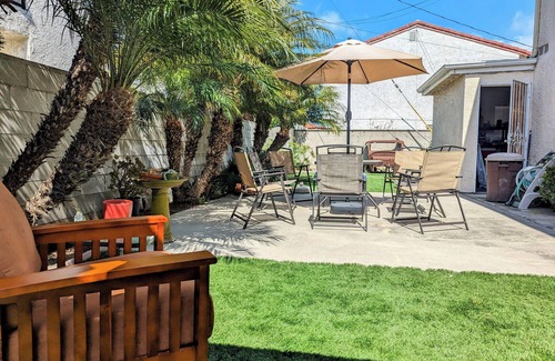 Located just 3.5 miles from Redondo Beach Marina & Pier & South Bay Beaches. Quiet & peaceful setting with nice backyard area for relaxing, & park nearby for walks or exercise. Shopping, dining, fast food nearby. Hollywood, Los Angeles just 25 miles away. Orange County Theme Parks just 29 miles away. Access to 2 bedrooms & 2 baths of this well appointed 3 bedroom home. Large master suite downstairs with full bath, vaulted ceilings, & Queen bed. 1 bedroom & full bath upstairs with 2 Twin beds. Open living & dining area with vaulted ceilings, 65" Smart TV & wifi throughout house. Kitchen w/ full cooking, stove, microwave, dishwasher, refrigerator. Large backyard area to relax & enjoy your downtime.