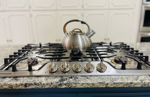 For your comfort the home has 2 thermostats downstairs and 1 thermostat upstairs. The nest thermostats can be controlled by sliding your finger up and down on the right side of the circle. An 80 gallon gas water heater supplies hot water. For our guests' safety, we have removed the key to the gas fireplace from the premises. Therefore, you will not be able to turn on the fireplace in the den.