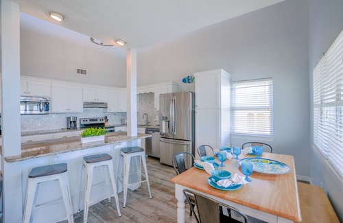 This fully updated home boasts an impressive array of amenities designed to enhance your stay. Enjoy the large third-story deck that provides unobstructed beach views, perfect for sunset cocktails or morning coffee with your loved ones. Inside, you'll find a game room featuring ping pong, shuffleboard, and darts—a fantastic entertainment option for guests of all ages. The open-concept kitchen and sunroom offer plenty of space for dining and socializing, while the oversized master suite and multiple living spaces ensure comfort and privacy for everyone. Plus, the backyard is fenced in, providing a secure area for outdoor celebrations or fun with pets.