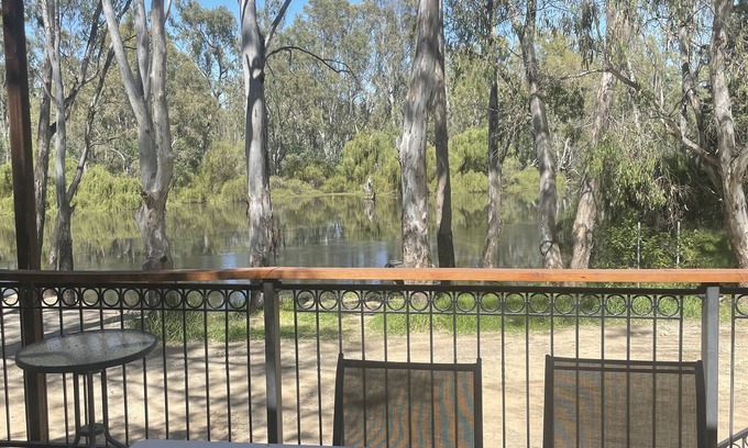 Huge open plan entertaining area with 2 large balconies overlooking Ovens River. 5 Bedroom accommodation opposite boat ramp.