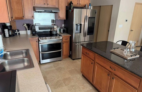 The oversized kitchen island, the double oven, the Samsung Refrigerator that plays your favorite music, BBQ grill and more, ---makes this home the perfect place for large families.