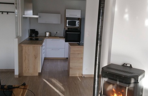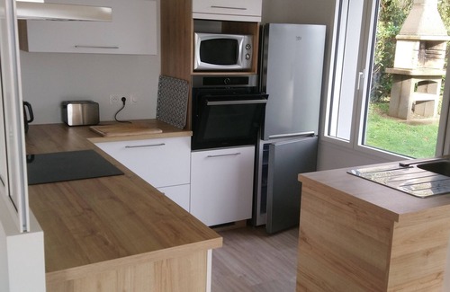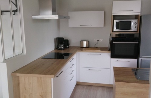 The kitchen is fully equipped: oven, microwave, kettle, coffee maker, toaster, ...