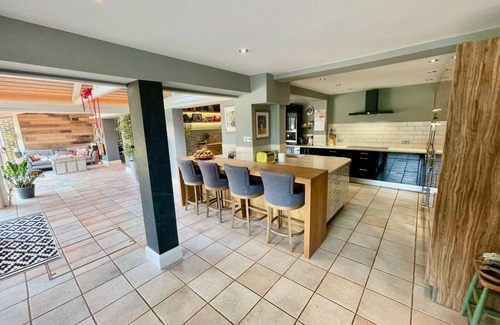 This large and spacious open plan sea-side home is set in two acres of land with indoor swimming pool & gym, pool table, table tennis, adventure climbing frame, trampoline and fenced in area with chickens. With 5 double bedrooms and one children's dormitory sleeping 7 (lower bunks are doubles) a playroom/cinema room, large living room with sofa seating 8-10, open plan kitchen/dining room, with two dining areas. This house is very spacious and light. There is also an exterior games room/bar/dining area/yoga studio. A mile and a half away from West Wittering Beach and Itchenor harbour, the house is surrounded by beautiful country walks and cycle rides. The historic town of Chichester is approximately 5 miles away with its famous theatre and cathedral. Just behind it lie the South Downs and Goodwood, with its race course, golf and various cultural festivals. Chichester golf club is approximately 3 miles away. Booking is 7 days minimum.
