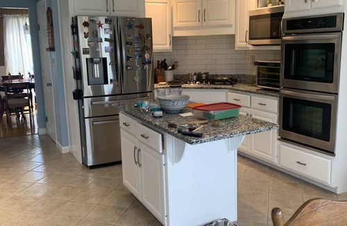 Large house 5 bedrooms , 5 bathrooms and laundry area. 2 computer rooms and work out room. King size and full size sleep number, 2 eating areas on 5 acres. House is full of antiques. Small children would need supervision.. House has trees around it and is at the end of a cul de sac. Owners do have a small shitizu dog that would NOT occupy the house and a outside cat. Renters need to be aware incase of pet allergies. Owners may stay on the property in their rv , but will not enter the home during your stay.