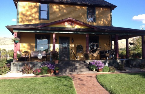 Full of art, plants, and life, this classic 115 year old farmhouse was moved to the current location in 2007, on its 100 year anniversary, from eight miles away. Originally located on a one hundred acre pear orchard, it now sits surrounded by the magnificent Palisade area views of the Grand Mesa and the Bookcliffs, with peach orchards and a vineyard immediately surrounding it.