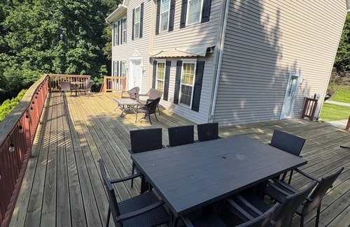 For your wedding stay, the Large House that sleeps 10 on 15 acres near Heritage Rail Trails, Glen Rock, PA provides a serene and spacious setting ideal for gathering family and friends. This modern home offers an array of amenities and features to make your special occasion memorable.