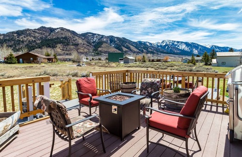 Our home has a large game room downstairs with pool table, ping pong, foosball movie area and more. We have a large outdoor deck with a barbeque grill, firepit, table and chairs, and an incredible view of the mountains.
