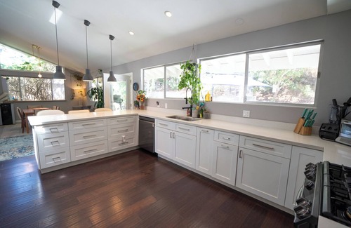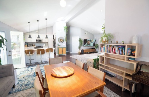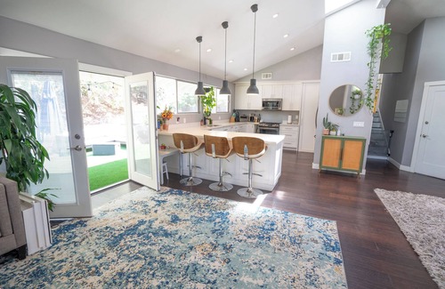19 5 Star Reviews on Airbnb. Discount for monthly & weekly stays. 6 minutes to La Jolla beaches. Large backyard in nature with hot tub, Sauna, ping pong, west elm couch & outdoor dining table. Spacious open floor plan to entertain downstairs & 3 bedrooms 2 bathrooms upstairs. 3rd bedroom has a Murphy bed if you prefer a bedroom and/or office. All rooms have smart TVs. Plenty of parking, quiet & very safe neighborhood. Great for families. Stays that are 31+ days don't pay tax. Read more for details :)
