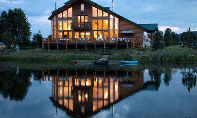 Large Lake Front w/Own Dock and Mountain Views. Sleeps 18 Cert. # VRP-24-0221 | House in Pagosa Springs