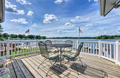 Reconnect with loved ones and enjoy a getaway of lake fun when you stay at this Paw Paw lakehouse! Featuring a private dock and lake views from the floor-to-ceiling picture windows, this spacious, tastefully designed home offers numerous vacation amenities. Spend the day fishing on Eagle Lake, playing yard games or relaxing on the deck. After dinner enjoy watching the sunset over the water and then cap the night off roasting marsh mellows over the fire, or drinking wine under the party lights.