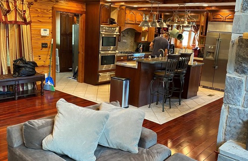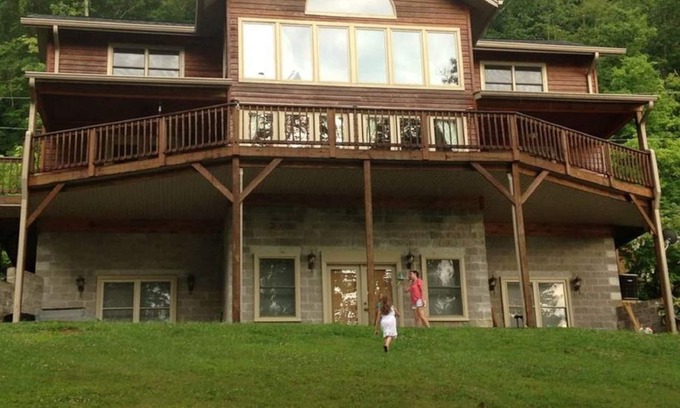 Lake house retreat its fun on the water and short drives to some of East Tennessee's best hiking trails. Beautiful log cabin-style home right on Norris Lake (year round deep water). Three levels of living with gorgeous mountain and lake views. A true chef's kitchen on the main level, with an additional full kitchen, bar and living area downstairs. All 5 of the bedrooms have their own bathrooms. Plenty of activities to do while your here: pool table, dart boards, poker table, horse shoes, corn hole, fishing off dock. Its a great get away in a quiet lake front community. Walk out to your dream back yard, with a new fire pit area and a full dock. Tubing, wake boarding, boating, sunbathing, wave running, fishing, swimming, and minutes away from great hiking & ATV trails. A five minute boat ride to “ Bubba Brews”local dockside restaurant with live music on the weekends. East Tennessee is home to a multitude of natural parks, nature sites, water falls, underground lakes, Great Smoky Mountains, Dollywood, Pigeon Forge/Gatlinburg and Royal Blue.