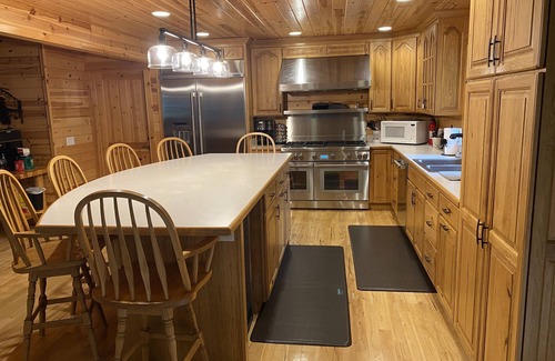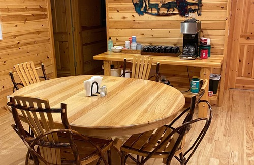 Enjoy this spacious beautiful lodge with your family at our quiet and relaxing property. Located on a deer ranch. Share stories on our front porch or cozy up with a book by the fireplace. Play yard games outside! Our kitchen has a fully stocked pantry. Large dining room table will fit your entire family. Our lodge is perfect for family get-togethers. Most rooms have en-suite bathrooms. Perfect for church groups, family reunions, or team building! No bachelor parties, party groups, etc. Property manager lives on site in separate home.