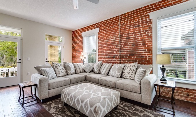 Join us at Jax Brickhouse! Formerly the Jacobs Apartment Building, it was uninhabited and boarded up for many years when the owners discovered this little gem in a historic area of downtown Jacksonville, FL. After spending 2 1/2 years completing full renovations, the building reopened in May of 2016. This 112 year old building is a little piece of downtown paradise! There are 5 apartments in the building, with three of them available for vacation rental. Each is a fully furnished 1100 sq foot apt, includes stainless steel appliances, washer, dryer, Keurig & toaster. Wood Floors in the living area, tile in the Kitchen/Bath and Carpet in the Master Suite. A 50" HDTV in the living area. There is a 40" HDTV with Roku in the Master Suite. This apartment is truly unique as it has 2 glass doors leading to a front balcony, great for unwinding after a long day or even enjoying your morning coffee while taking in the views of Downtown! Also, out the back door is a little deck area with lounger for enjoying the backyard views and having a quiet place to read! There is a Backyard Garden with BBQ, Hot Tub, Infrared Sauna, TV & Fire Pit, as well as a variety of home grown herbs like Basil, Rosemary, etc. that are available to everyone. The backyard amenities are shared - and quiet hours for the yard are posted so we can be respectful of everyone needing their sleep time!